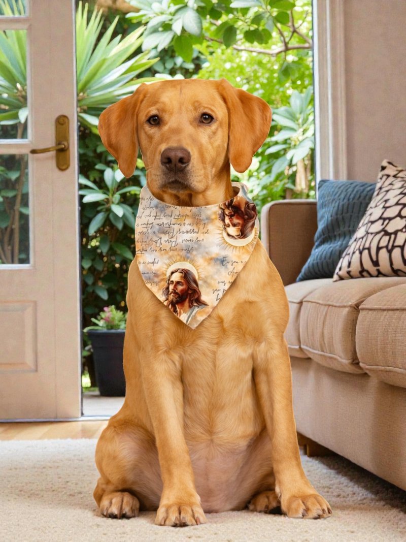 A bandana pet com estampa religiosa de Jesus é a escolha ideal para quem deseja expressar fé, proteção e muito carinho pelo seu melhor amigo.