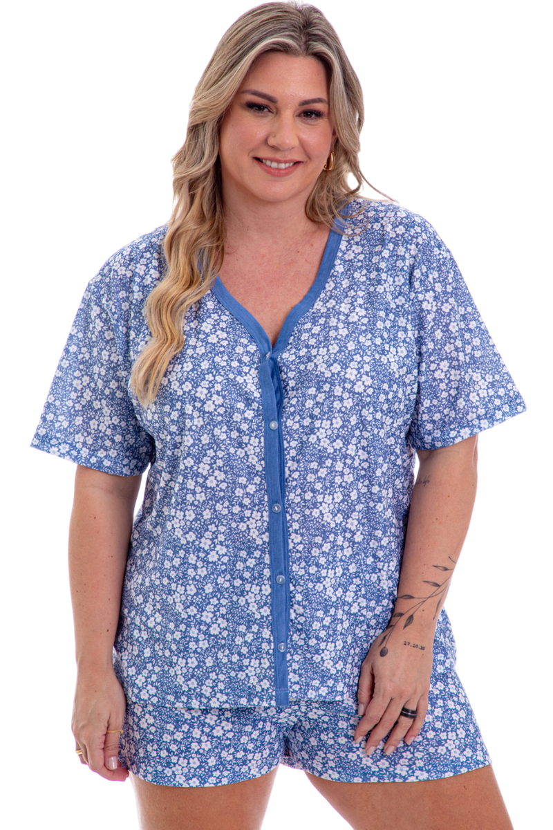 Pijama de botões, com abertura frontal, confeccionado em malha com elastano