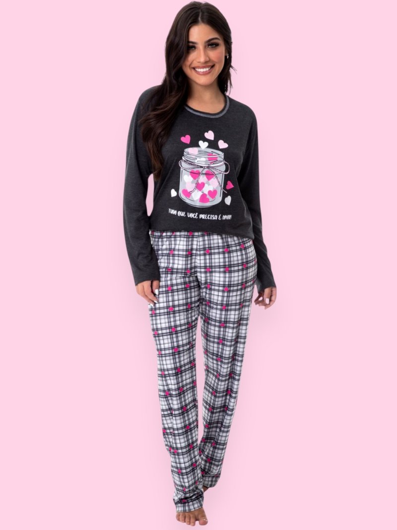 Calça confeccionada microfibra com elastano, estampa em xadrez com pequenos corações pink!!!