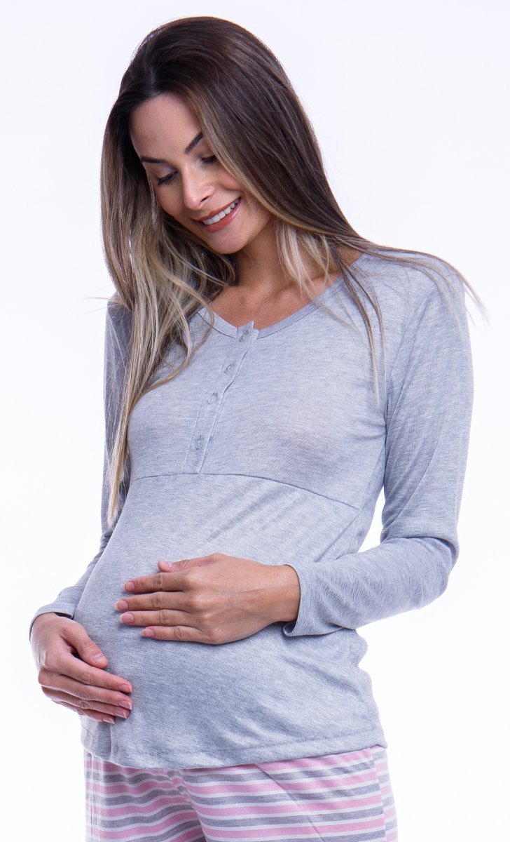 Pijama ideal para lhe acompanhar desde a gestação até o período de amamentação!