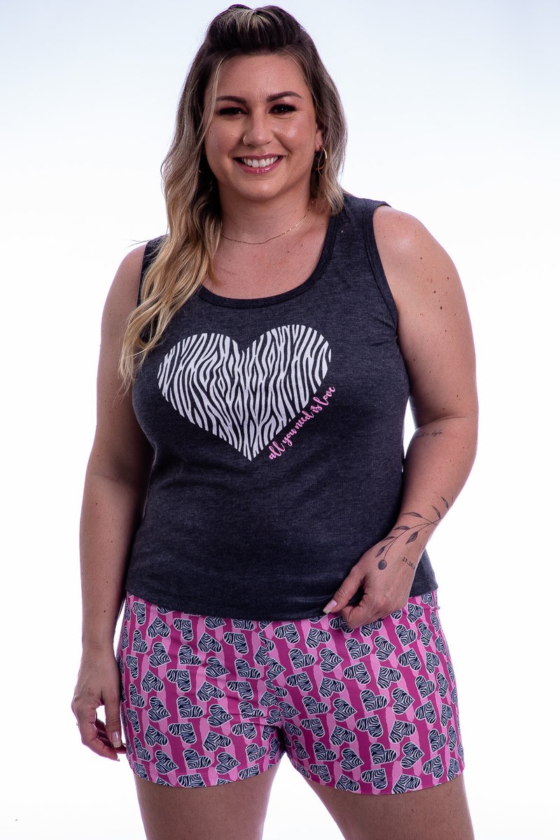 Short confeccionado em meia malha estampada com coraçõezinhos em Animal Print muito fofos!