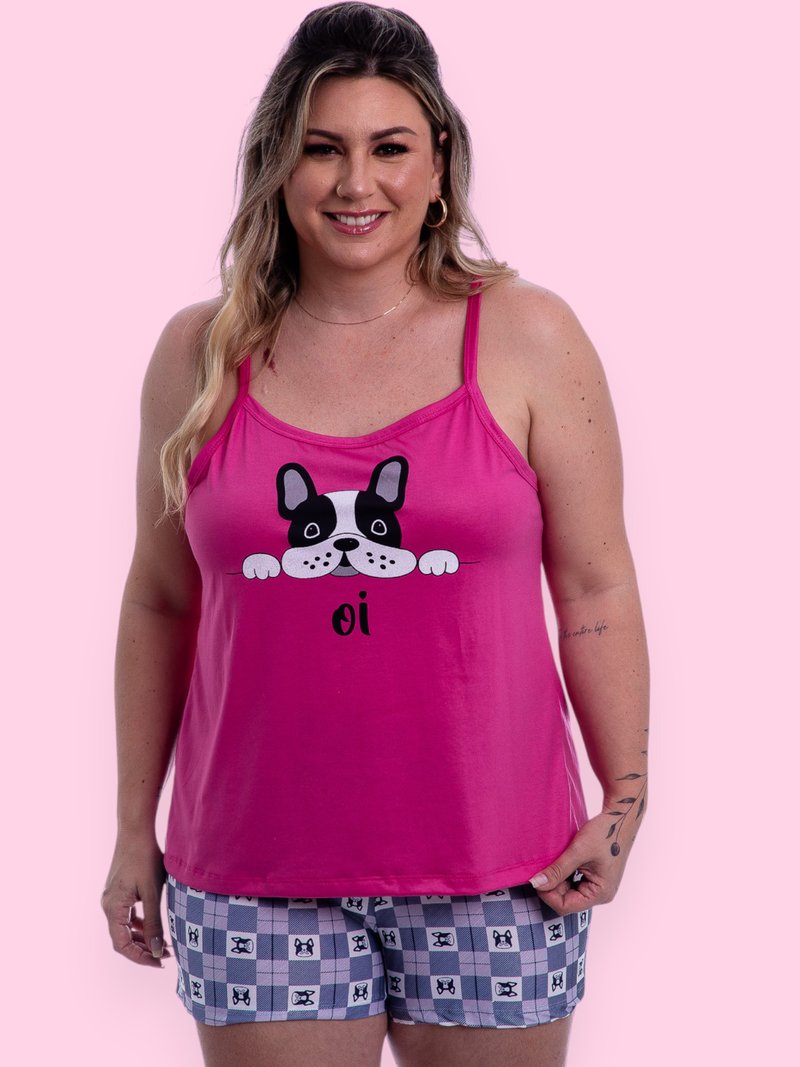 Short confeccionado em meia malha Comfort estampado com carinhas de cachorrinhos muito lindos!