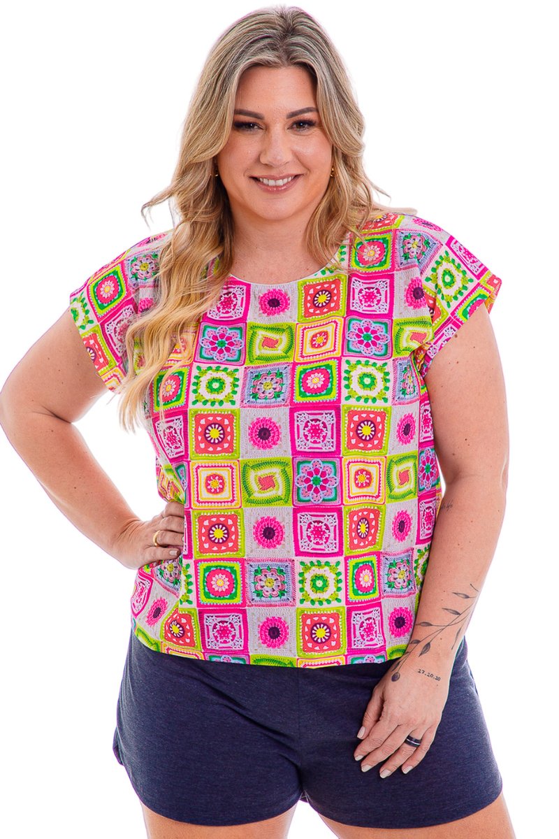 Blusa com manga japonesa confeccionada em meia malha estampada, macia ao toque, leve e super confortável.