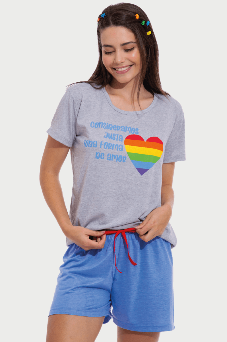 Estampa coração com frase: "Consideramos Justa Toda Forma De Amor.", em cores contrastantes.