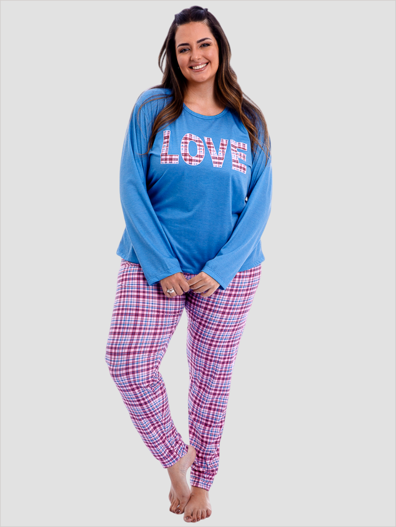 Calça com punho, confeccionada em meia malha xadrez, super confortável