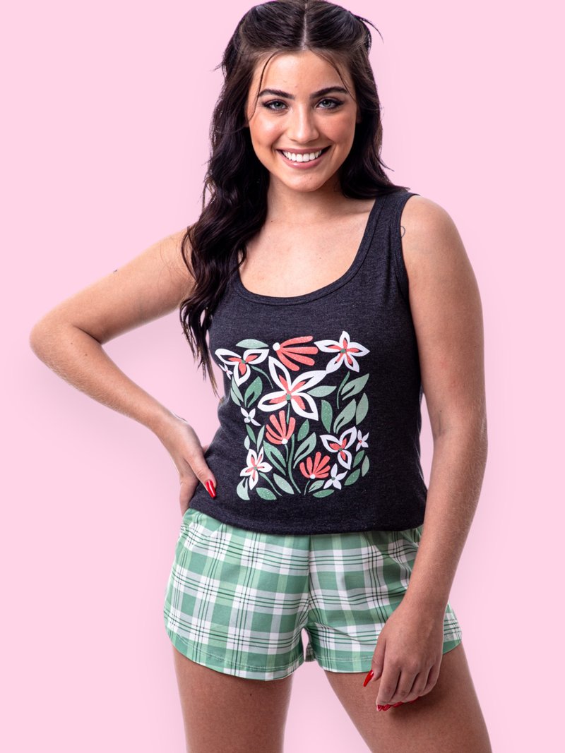 Pijama Feminino Regata Lua Chic Xadrez com Floral