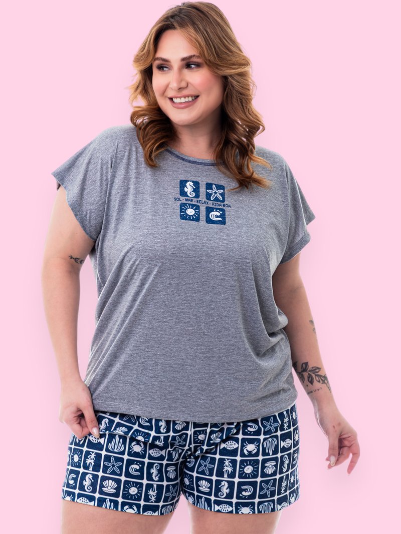 Pijama Feminino Curto "Sol, Mar, Relax, Vida Boa" – Estilo e Conforto para Dias de Pura Leveza!