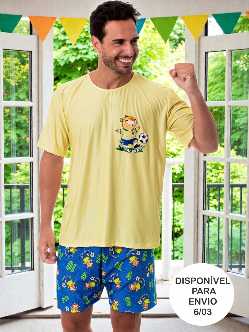 Um pijama alegre e cheio de energia, perfeito para torcer com conforto! 💛💚