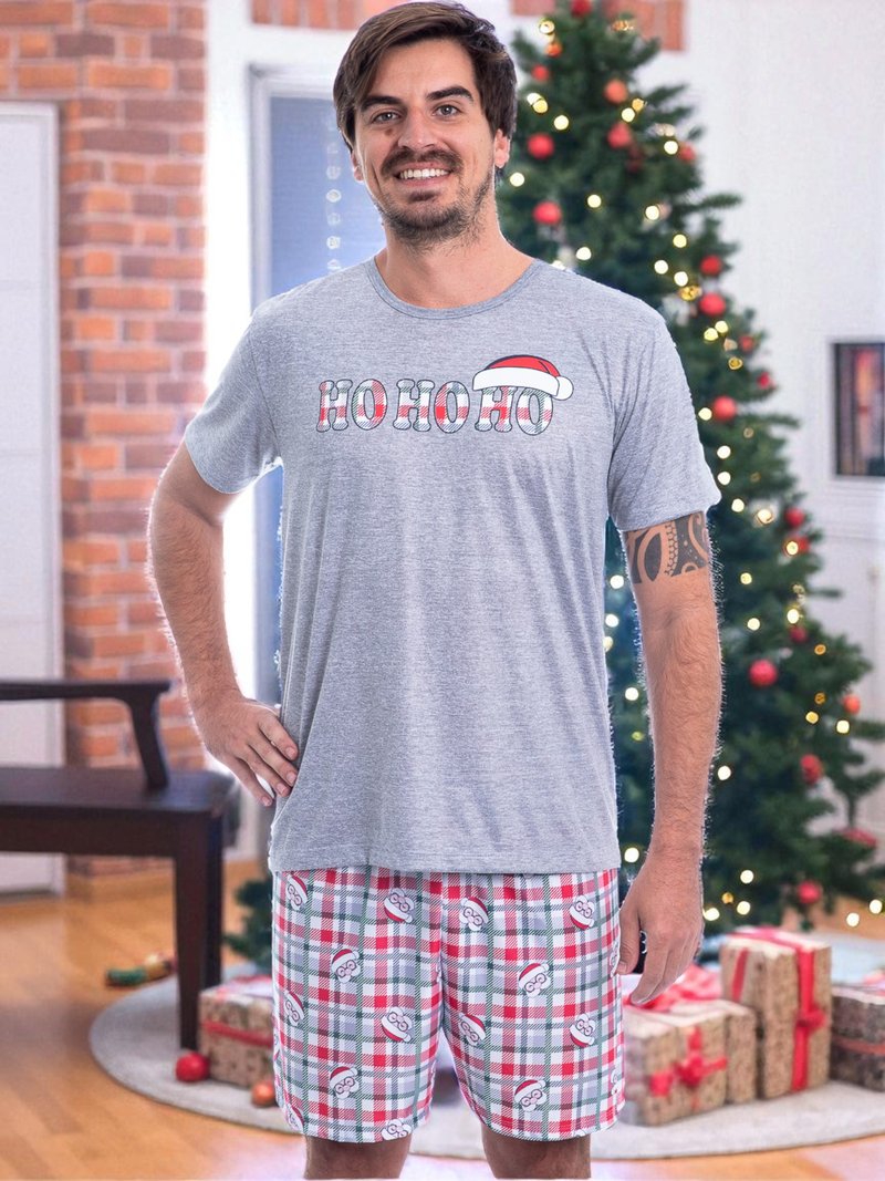 Short confeccionada em meia malha xadrez estampado com carinhas muito fofas de Papai Noel!