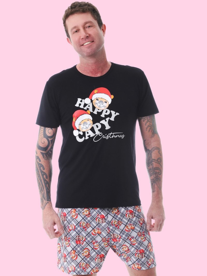 Com estampa exclusiva “Happy Capy Christmas” e a simpática capivara de gorro de Papai Noel, ele garante um visual divertido e encantador para a noite mais mágica do ano.