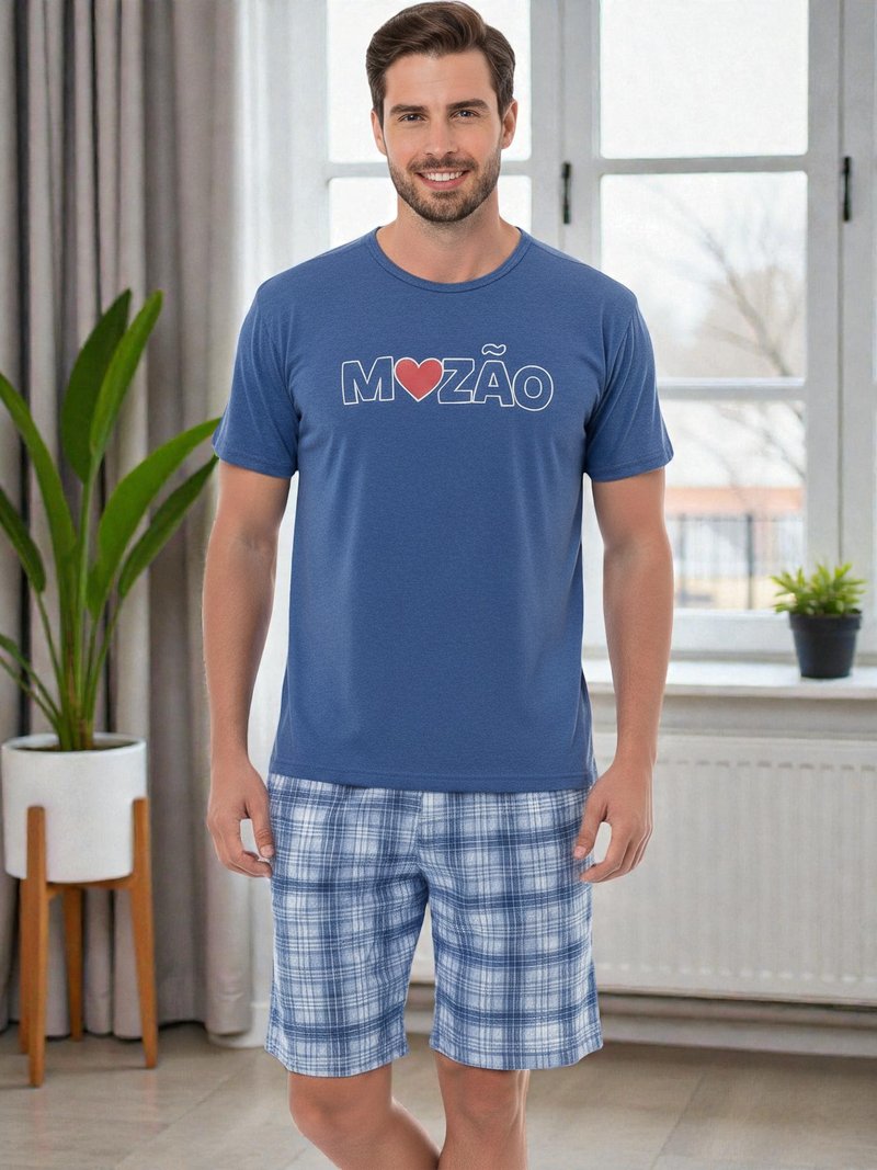 O modelo conta com Camiseta em malha macia – azul marinho, super confortável e com estampa divertida “Mozão”