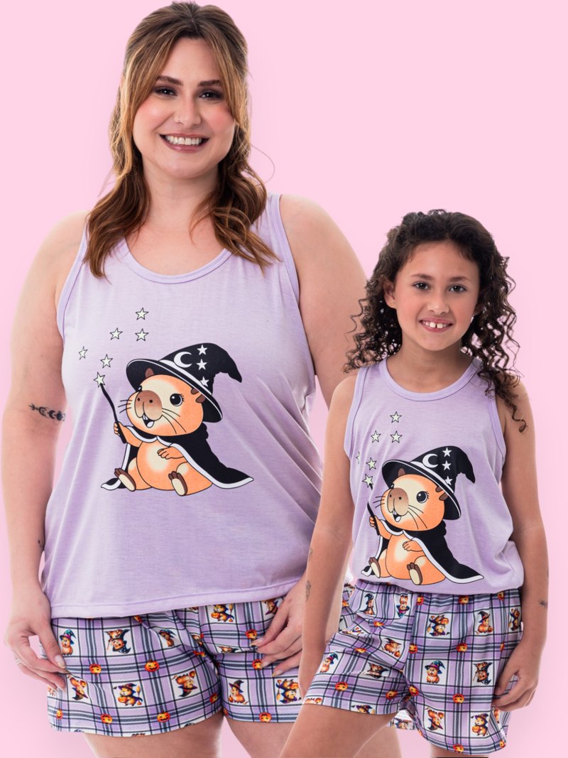 Com estampa divertida e super delicada de uma capivarinha mágica vestida de bruxinha, o pijama traz conforto e estilo para noites cheias de carinho e diversão.